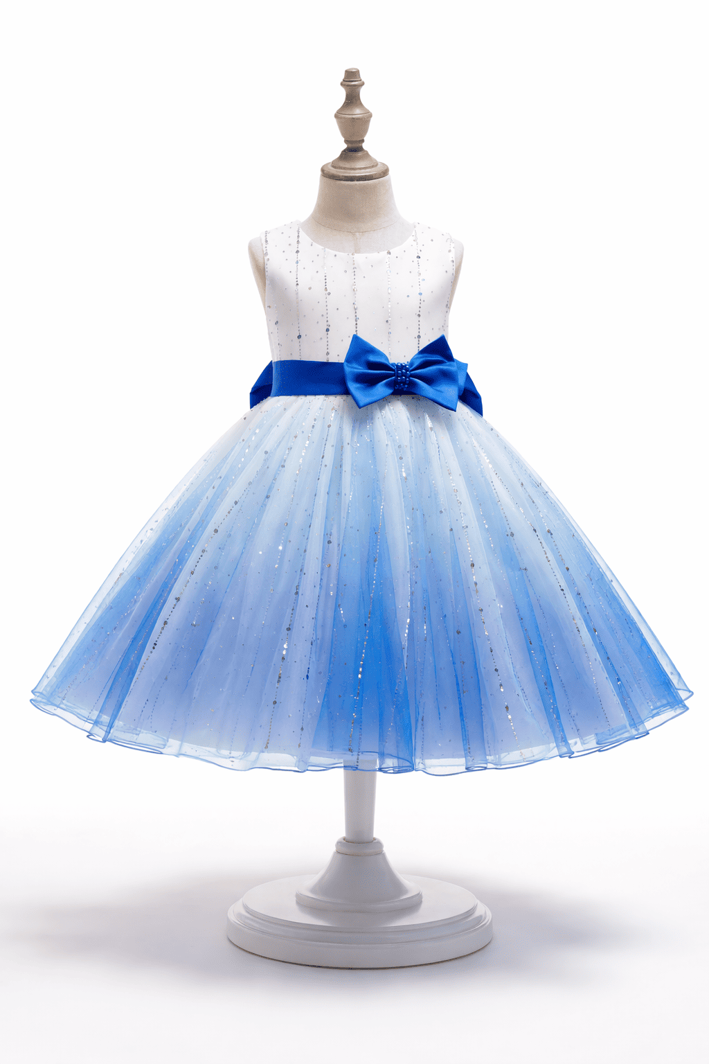 Vestido de ceremonia con lazo azul