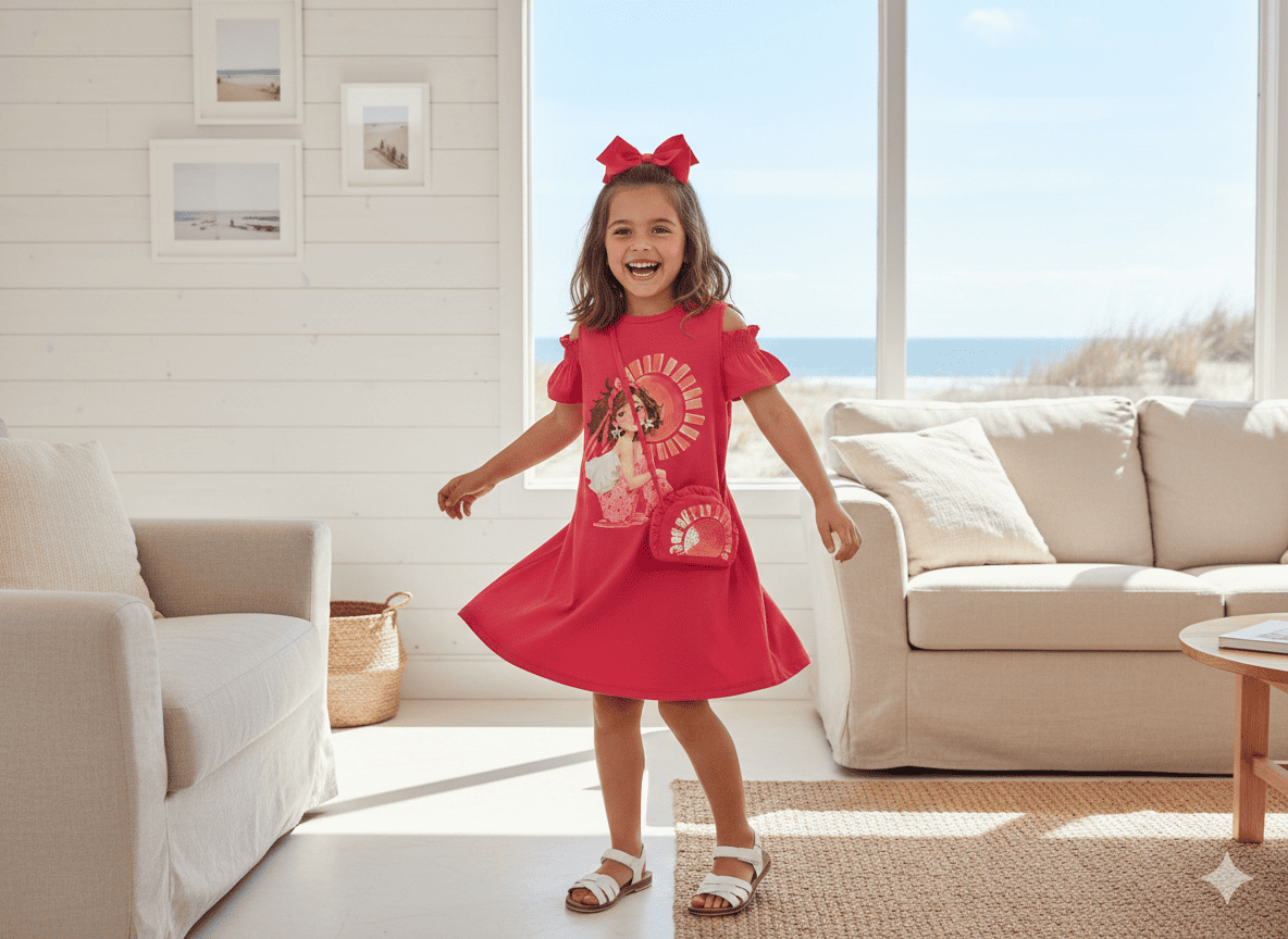 Vestido manga corta con bolso